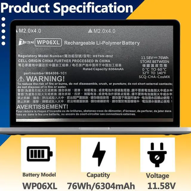 HIGH-PERFORMANCE, LONGER LASTINGWe have passed a series tests of short circuit, overheating, and overload protection before shipments. ALL of our battery are CE,FCC,RoHS Certified .Premium battery chip ,makes a faster-charging and longer-lasting performance to meeds your daily working,learning and playing needs.