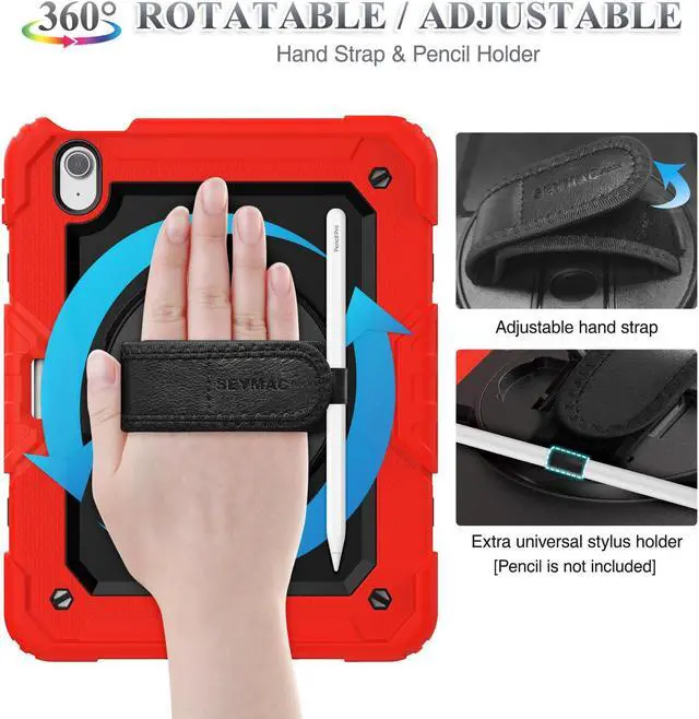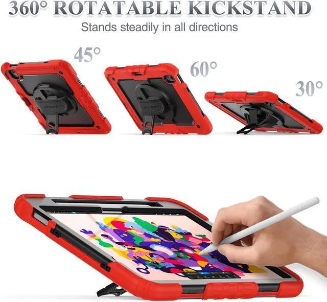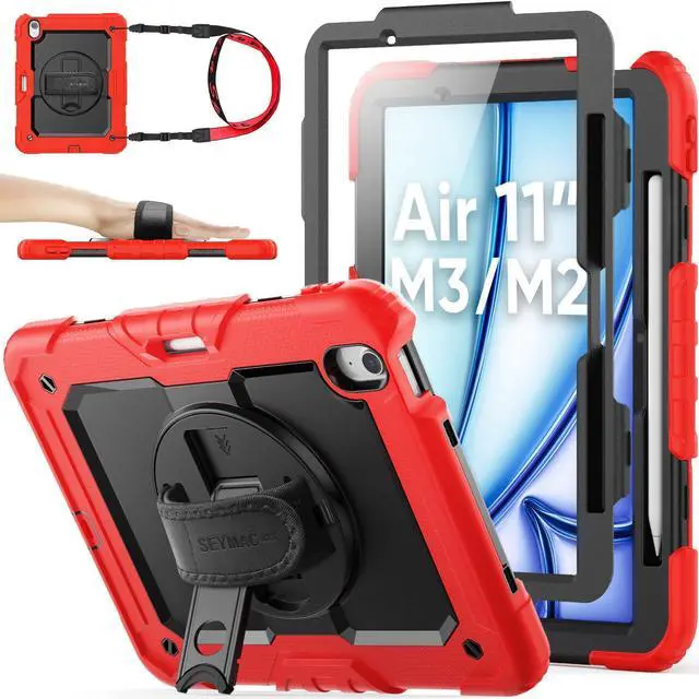 SEYMAC stock Case for iPad Air 11 inch Case M3/ M2 (2025/2024), for iPad Air 6th Generation, Heavy Duty Protective with Pencil Holder, Screen Protector, Stand, Hand Strap, Shoulder Strap, Red