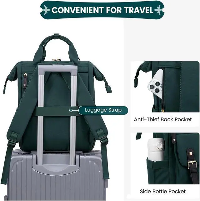 LOVEVOOK Laptop Backpack for Women, Teacher Nurse Bag Work Travel Computer Backpacks Purse,Water Resistant Daypack with USB Charging Port,Dark Green 15.6in