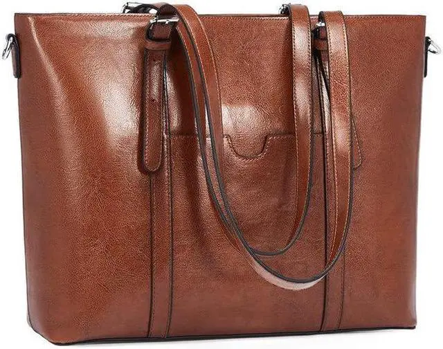 BROMEN Brand Product: The laptop tote is made of top quality materials by professional craftsmen. faux leather, durable and soft fabric lining, with silver hardware. This is absolutely a much more excellent quality bag and more durable than other laptop bags in same style and same price on amazon.