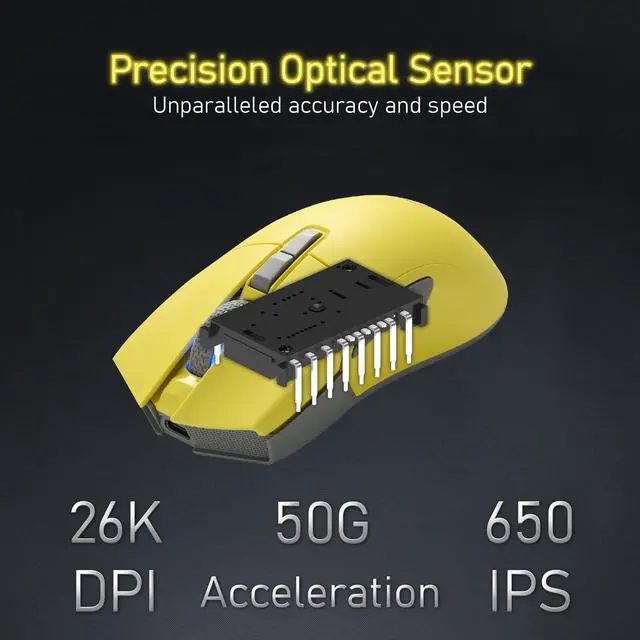PixArt PAW 3395 Optical Sensor adjustable DPI up to 26,000 dpi resolution. You can promptly adjust the moving speed for a fast response during gaming.