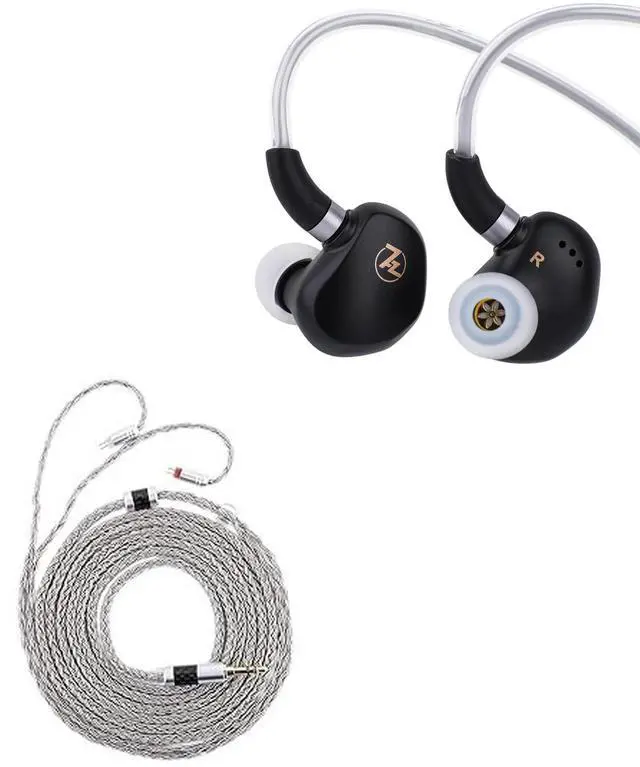 Linsoul 7HZ G1 in-Ear Monitor, 10mm DLC Diaphragm Dynamic Driver IEM Earphone(3.5mm No Mic, Black) + Tripowin Zonie IEM Cable, 2m Long Earbud Cord