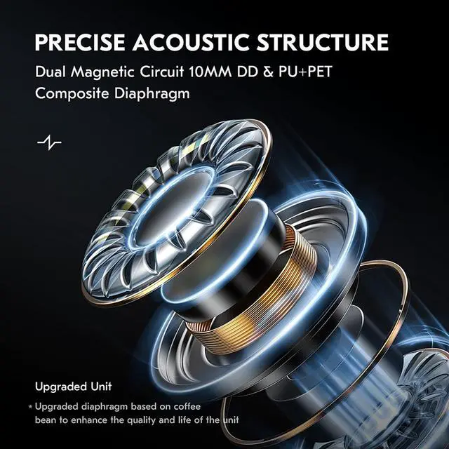 Dual Magnetic Circuit 10MM DD Clear Earbuds Headphones CCZ DC02 in ear monitor headphones adopts dual magnetic circuit 10mm DD,Making the sound More balanced sound quality.And PU+PET Composite Diaphragm Fully exploiting the potential of the diaphragm,bringing a delicate dynamic and transient texture.