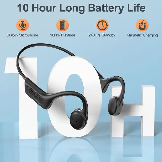 5.3 Wireless Bluetooth stable connection This Bone conduction headset bluetooth 5.3 technology supports faster transmission speed, more stable transmission and compatibility, open ear headphones widely compatible with Android, IOS, TV, video conferencing and other Bluetooth devices, the radio of this bone conducting earphones i