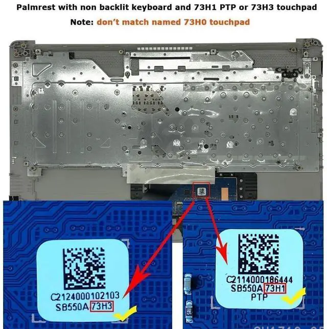 • Compatibility: Compatible with HP Laptop 17T-BY 17Z-CA 17-BY 17-CA Upper Case Palmrest with US Layout Keyboard and Touchpad Assembly Replacement Parts;The Touchpad Type MUST be 73H1 or 73H3 on the back lable;This is not compatible If your Touchpad with "73H0" on the back lable