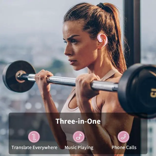 Tulbeys Open Ear Headphones, Real-Time Translation Earbuds with 134 Language Support, AI Translator Earbuds, Wireless Bluetooth 5.4, 3-in-1 AI Translator for Travel, Business & Learning(Pink)