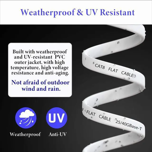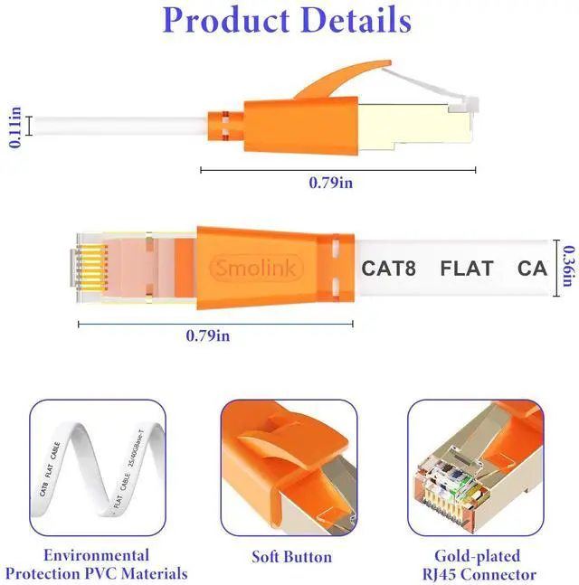 Space Saving: Cat 8 RJ45 cable adopts optimized flat shape design, easy to install, more flexible and perfectly fit the corner, it can b
