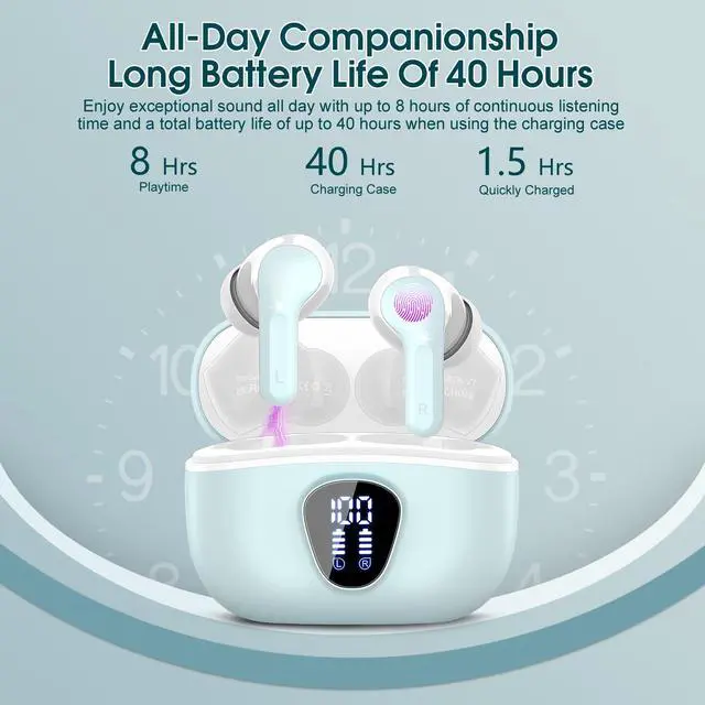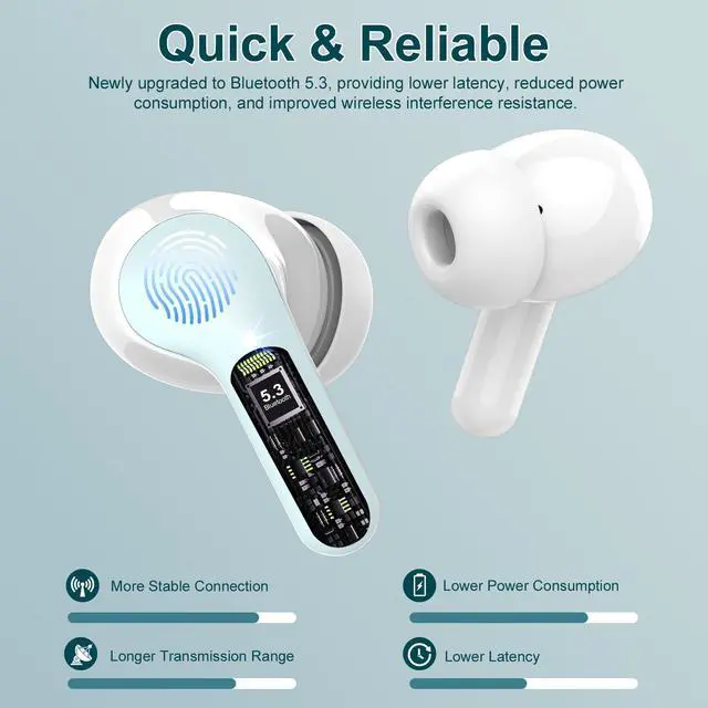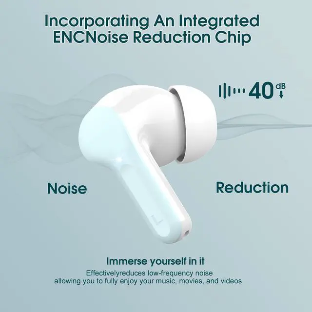 • Clear call experience: This noise cancelling earbuds uses advanced ENC call noise reduction technology to effectively filter out more than 80% of external noise, ensuring that the other party's voice remains clear during busy commuting, work or exercise, providing you with a high-quality call experience. The Headphones equipped with 4 high-performance microphones, it can accurately capture your voice, so that the other party can always hear clearly throughout the call even in a noisy environment. ^