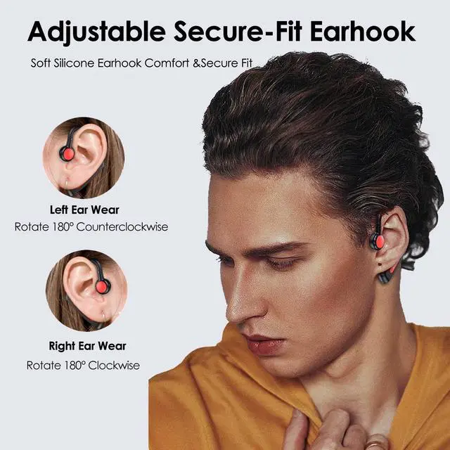 IPX5 Waterproof -- With a superb reinforced, sleek design combined with the latest nanotechnology, the waterproof wireless earbuds with earhooks offer IPX5 waterproof technology, allowing you to fully enjoy workouts with no fear of sweat or rain damaging the product.