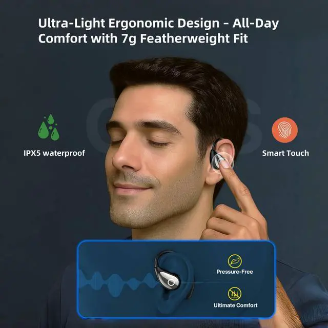 Premium Sound Quality with Secure Fit Experience crystal-clear audio with these advanced bluetooth earbuds featuring 14.2mm dynamic drivers. The innovative over ear earbuds design with comfortable earbuds with ear hooks ensures a secure fit during workouts. Unlike ordinary ear bud options, our bluetooth earbuds over ear provide superior sound isolation and minimal sound leakage