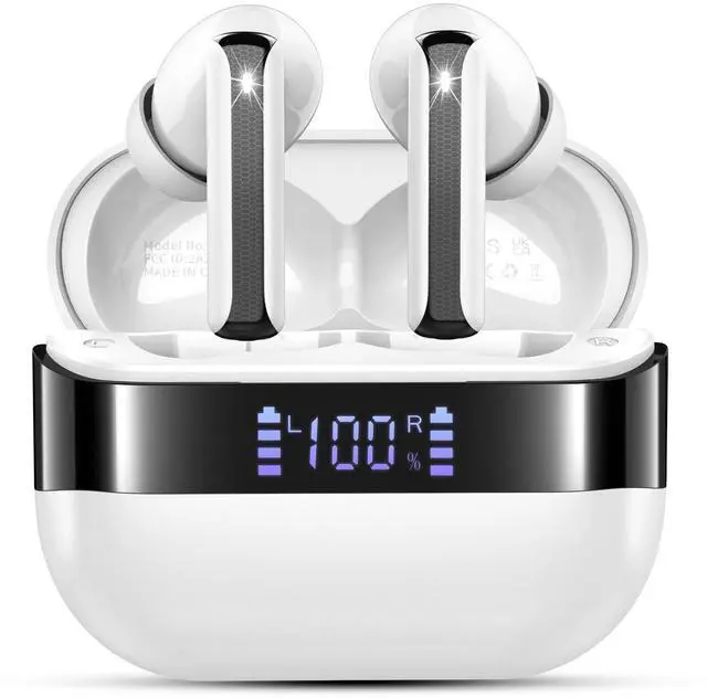 Wireless Earbuds, 2025 Bluetooth 5.4 Headphones Bass Stereo, Ear Buds with 4 Mics ENC Noise Cancelling, Bluetooth Earbuds 48H Playtime LED Display Charging Case, IP7 Waterproof in Ear Earphones white