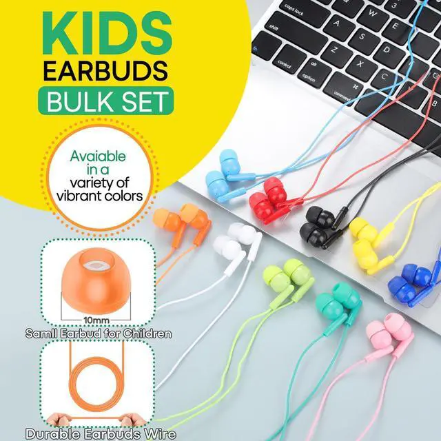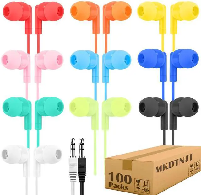 Vibrant Colors:Kids earbuds are available in red,orange,yellow,green,light blue,dark blue,pink,purple,white,black,10 colors.Bulk Earphones 100 pack,individually packaged.