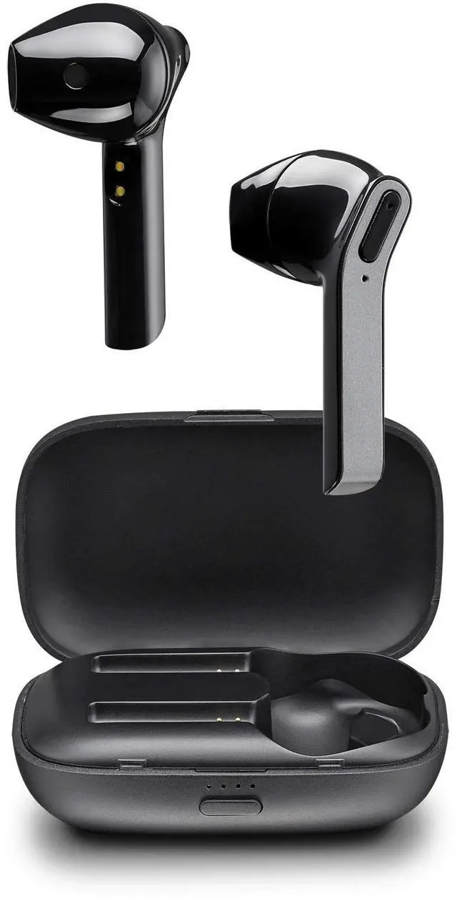 Say hello to true wireless freedom and goodbye to messy cords. With no strings holding you back you can do more and be more in your sweat proof truly wireless earbuds. The included recharging case not only protects the earbuds while you stow them away, but can also recharge your earbuds fully between your longest listening session. The right and left earbuds are paired together right out of the box, so all you have to do is connect via Bluetooth to your favorite device. One key control (Bluetooth, play, pause, phone, on/off) and Voice prompts puts these 'buds a cut above the rest.