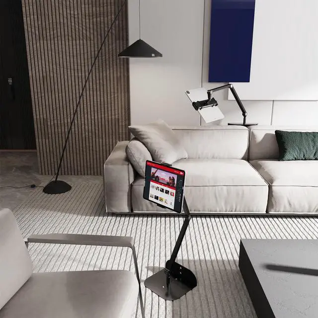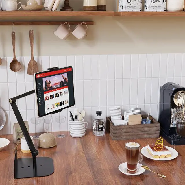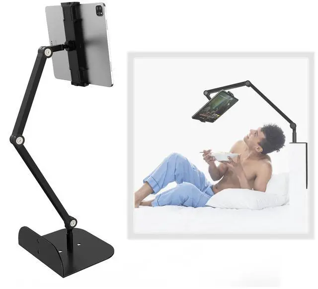WEGASTU Phone and Tablet Holder for Bed, Sofa and Desk Dual Use-Weight Base, Adjustable Arm Stretchable Stand, Compatible with IPad Mini Air Pro, Galaxy Tab, Kindle, Switch, Phone - Black