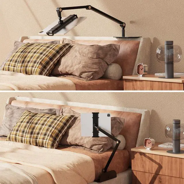 WEGASTU Phone and Tablet Holder for Bed,Sofa and Desk Dual Use-Weight Base, Adjustable Arm Stretchable Stand, Compatible with IPad Mini Air Pro, Galaxy Tab, Kindle, Switch, Phone - Black