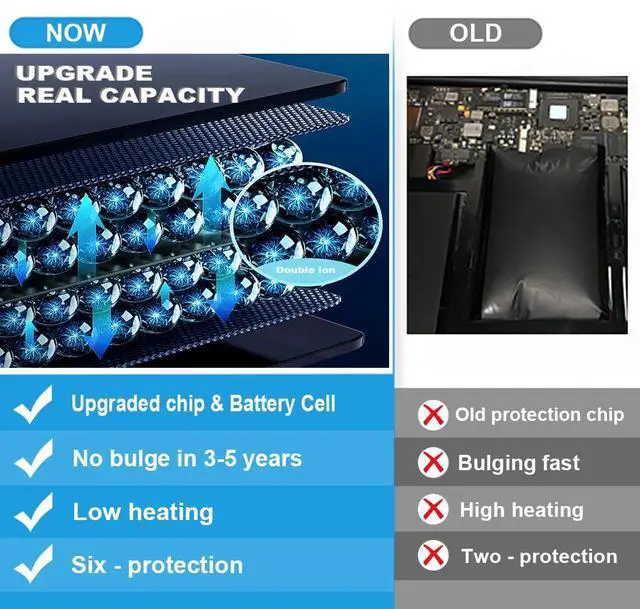Newest 4.0 upgraded OEM Battery for macbook retina: Japan High Performance Electric Core and Upgrade chip. Up to 1500+ recharge cycles over the life of the battery--More than 5+ Years. Overcharger and Discharger Circuit Protection, Ensure fast charges and low power consumption