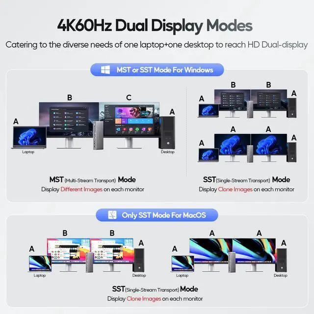 • KVM SWITCH DUAL MONITOR WITH 4K HIGH RESOLUTION - The Dual HDMI KVM switches support up to dual 4K@60Hz (MST) on windows DisplayPort 1.4 Port and up to 1080P@6