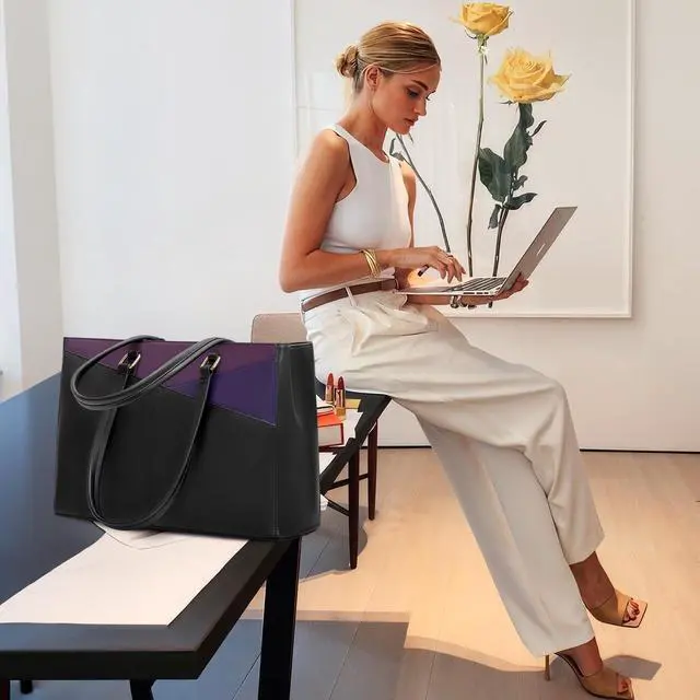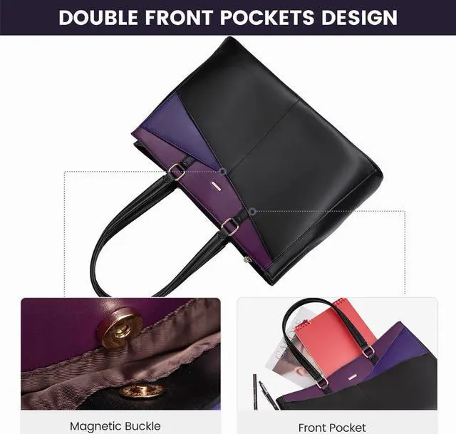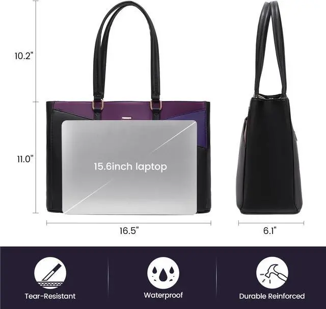 Premium Durable Material Laptop Bag:This computer tote is crafted in durable, water-resistant, scratch-resistant PU Leather and polyester lining. Top smooth metal zipper for easy opening. Metal feet base protects your bag from damage.