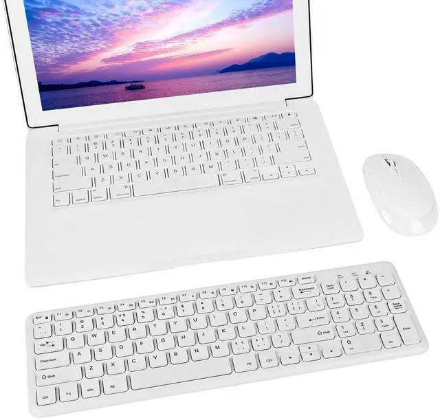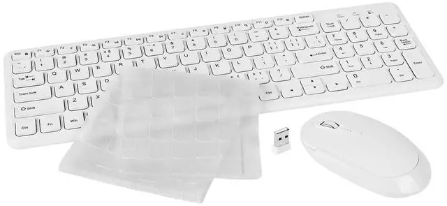 HW156 2.4GH z Wireless Keyboard and Mouse Set, 96 Keys Full-Size Ultra Thin Silent Lightweight, Shared USB Receiver, Optical Mouse Combo for Laptop PC Desktops Computer/Windows/Mac/iMac (White)