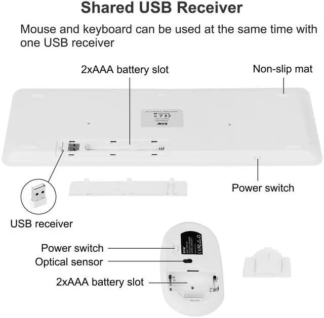 Power Saving & DPI AdjustableThe keyboard and mouse will automatically go to sleep if not used for more than 10 minutes, and can be restarted by pressing any button. Mouse sensitivity can be easily adjusted between 3 DPI levels (800/1200/1600).