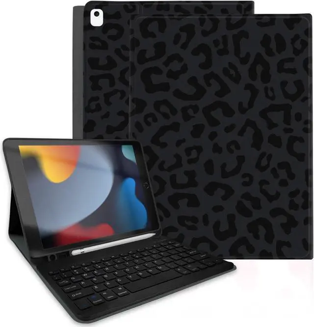 TopPerfekt for iPad 9th Generation Keyboard Case 10.2 inch 2021, Magnetically Absorbent, Auto Sleep/Wake, Pencil Holder for iPad 8th Gen 2020, 7th Gen 2019, Air 3rd, pro 10.5 inch - Black Leopard