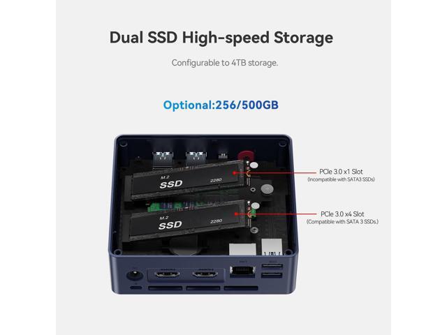 - Efficient Heat Dissipation & Multi-interfacesBeelink MINI S13 built-in fantastic cooling fan, heat sink, and hard drive cooler help cool down the hardware and reduce hardware loss, delivering faster response speed. Mini Computer features a variety of interfaces design (4*USB3.2 Gen2 10Gbps, 2*HDMI 4K 60Hz, 1*RJ45 1000M LAN, 1*Audio Jack, 1*DC Jack), easily meet office business needs, home audio and video needs.