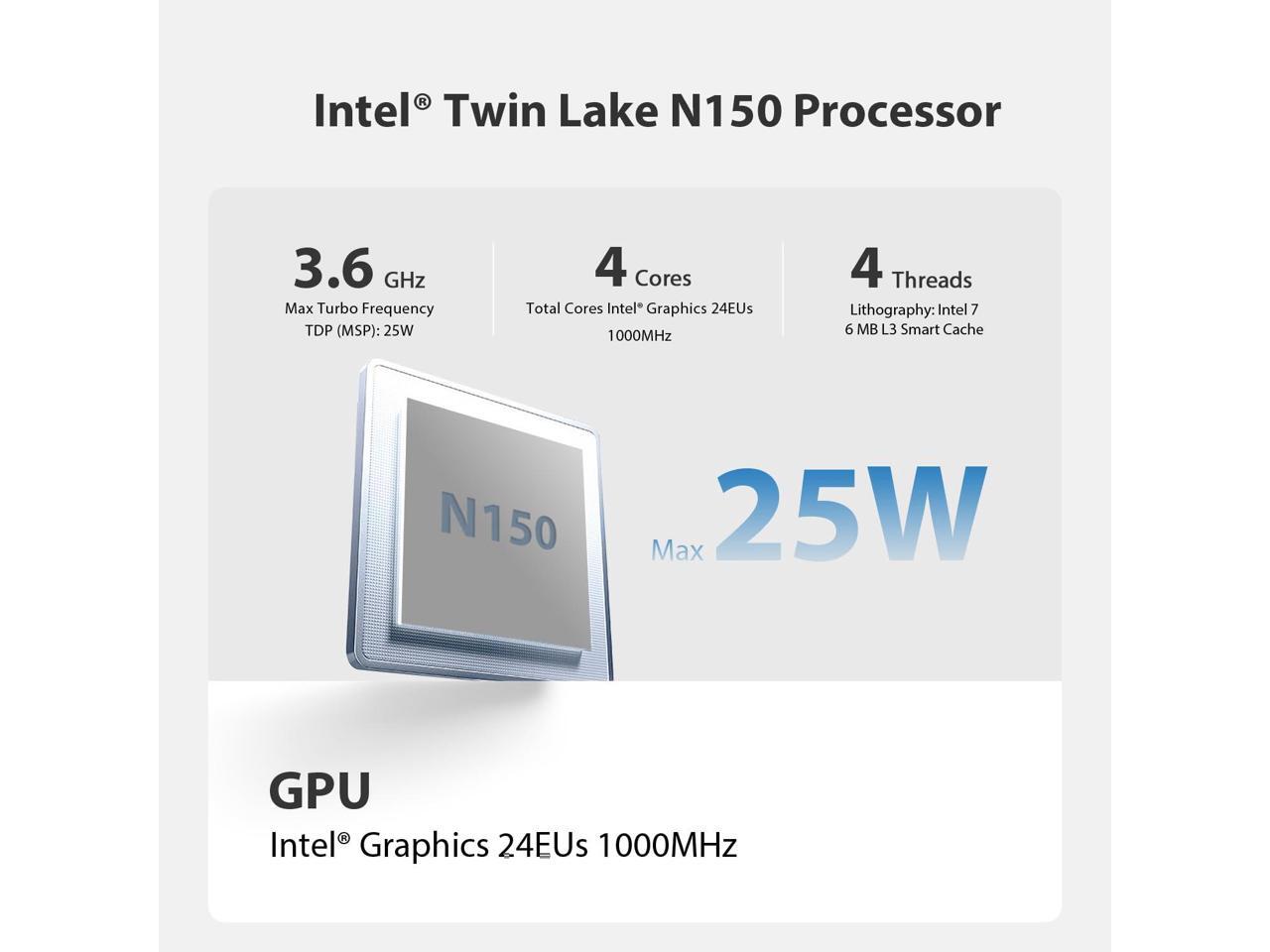 - Smooth & Light weightBeelink Mini PC comes with Intel Twin Lake 4-Cores N150(up to 3.4GHz). This mini pc is suitable for Zoom meetings/Skype, allows to run Office, PS, surf the internet and watch stream video at the same time. The Mini Computer measures only 115 x 102 x 41mm, which is ideal for diverse usage scenarios such as office, online education, entertainment, industry, etc