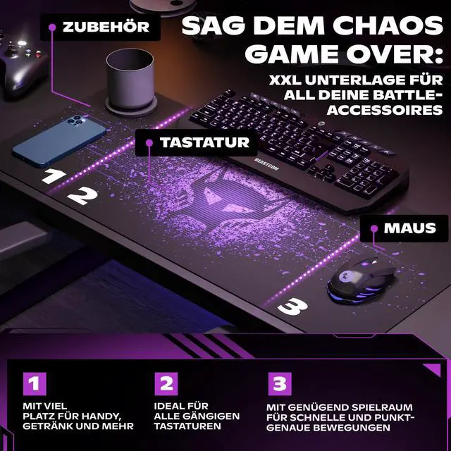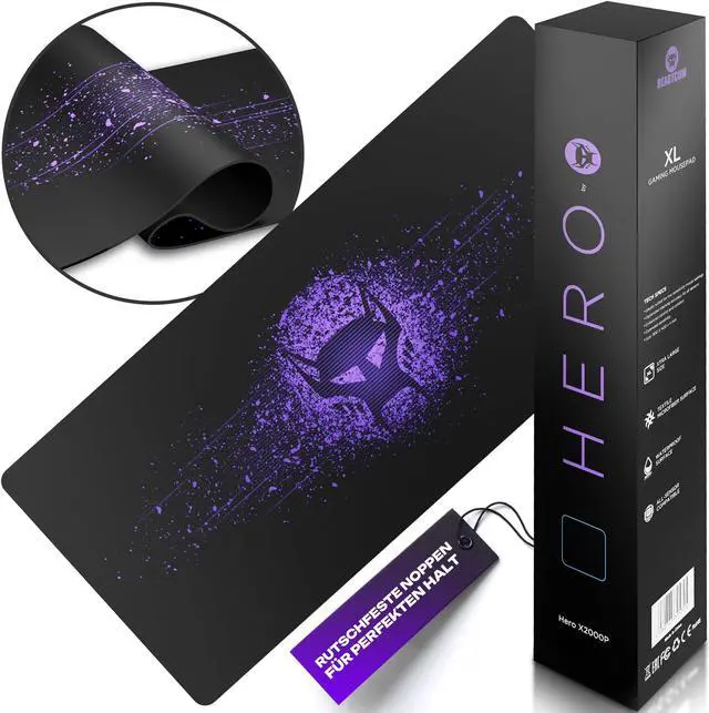 BEASTCOM Hero X2000 Gaming Mouse Pad, Purple - XL Mousepad 36"x 12" Large Mouse Pad - Thick Cloth Desk Mat for Keyboard and Mouse - Non Stitched Edges & Anti Sweat Design