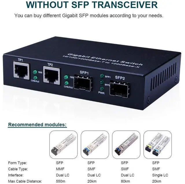 4-Port Gigabit Ethernet Fiber Switch, with Two SFP Slots (1000M), Without Transceiver
