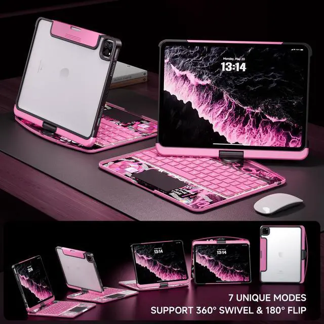 360° Rotate & 180° Flip: This case supports 360° rotation and an infinite viewing angle from 0° to 180°, ensuring a comfortable perspective for typing, reading, and gaming, providing you with amazing versatility. It can be easily adjusted to any angle that suits you perfectly. You can take it to school, travel, work from home, write, or wat