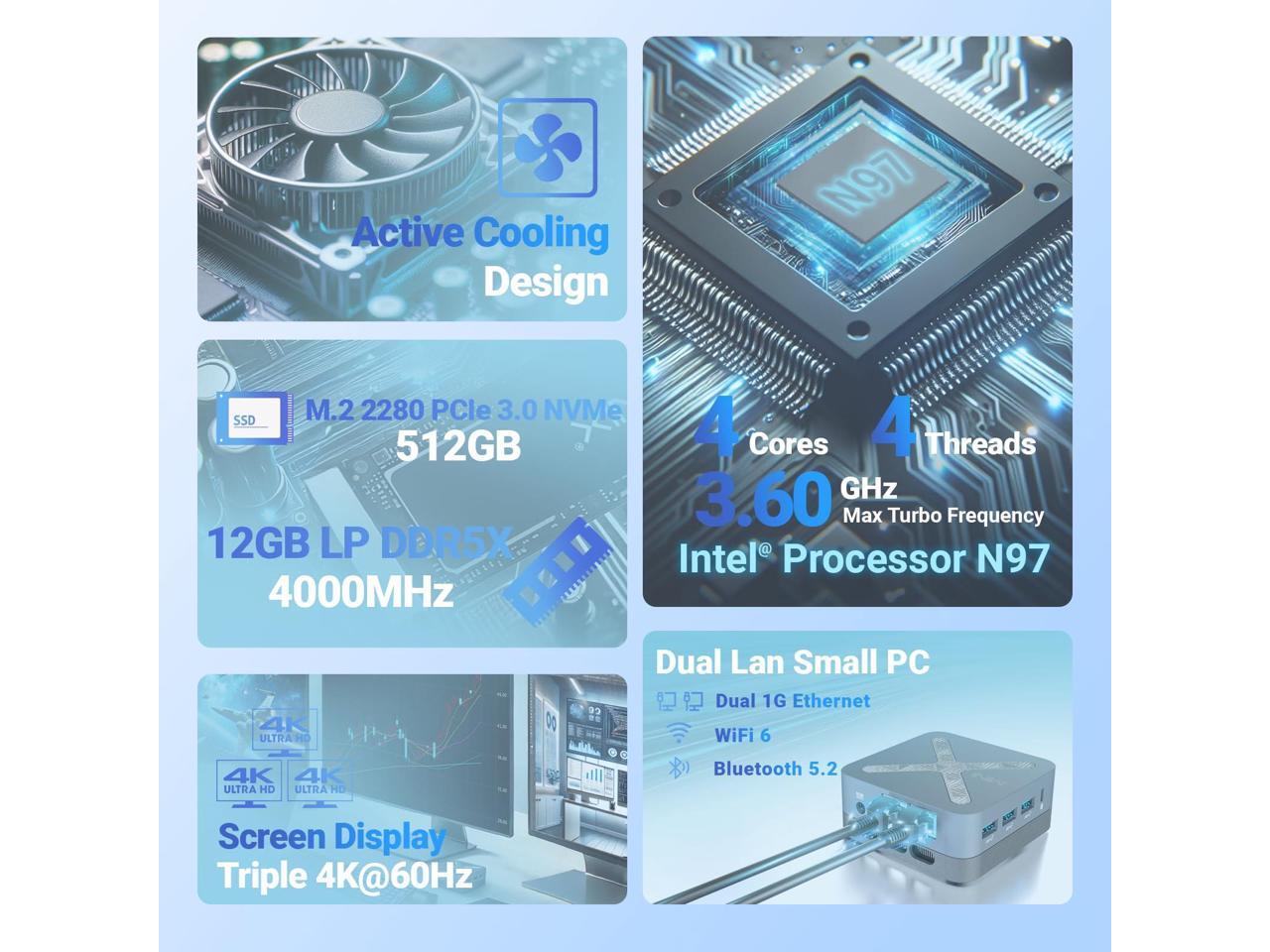 - Dual Lan Small PC Dual LAN ports and WiFi 6 with BT5.2 ensure youre always online, whether youre working, streaming, ensure fast, stable internet for high-bandwidth needs