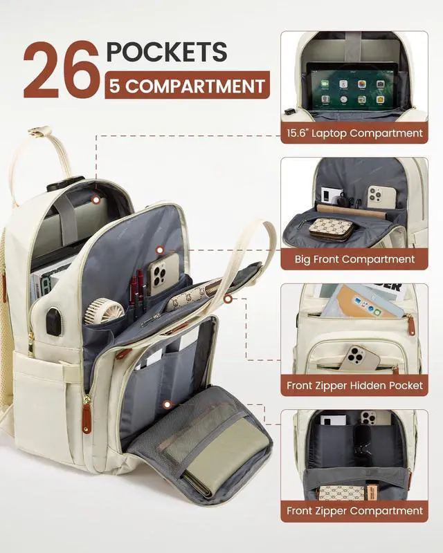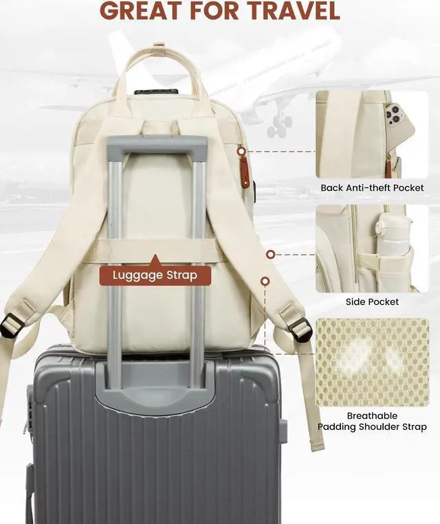 LOVEVOOK Laptop Backpack Purse for Women, Travel Anti-theft Work Bags with Lock, Business Computer Bag College backpack for Men, Casual Hiking Daypack, Fits 15.6 Inch Laptop, Beige
