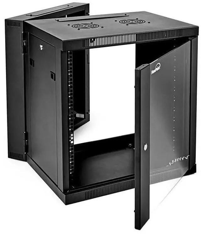 DURABLE - The 12U NavePoint Swing Gate Series network cabinet is constructed from robust cold-rolled steel, reinforced with a resilient black powder coating. Supporting a maximum weight of 200 lbs, it serves as a dependable solution for network and server equipment, perfect for long-lasting installations.