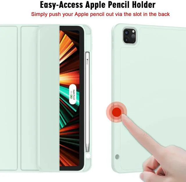 ZryXal New iPad Pro 12.9 Inch Case 2022/2021/2020(6th/5th/4th Gen) with Pencil Holder,Smart iPad Case [Support Touch ID and Auto Wake/Sleep] with Auto 2nd Gen Pencil Charging (Pale Green)