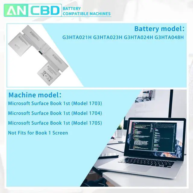 ANCBD G3HTA024H Keyboard Battery for Microsoft Surface Book 1 Model 1703 1704 1705 13.5 -inch G3HTA023H G3HTA021H G3HTA048H 7.5V 51Wh/6800mAh (Not Fits for Book 1 Screen)