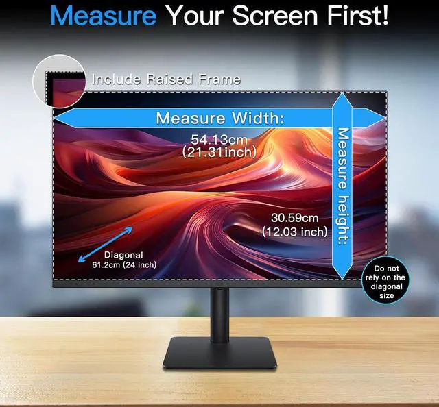 Compatible Model(s): LUSA DESIGN brand filter only for 24 inch -diagonally measured - widescreen monitor - aspect ratio 16:9 - filter size: width: 20 15/16", Height: 11 13/16" (531mm x 298mm)