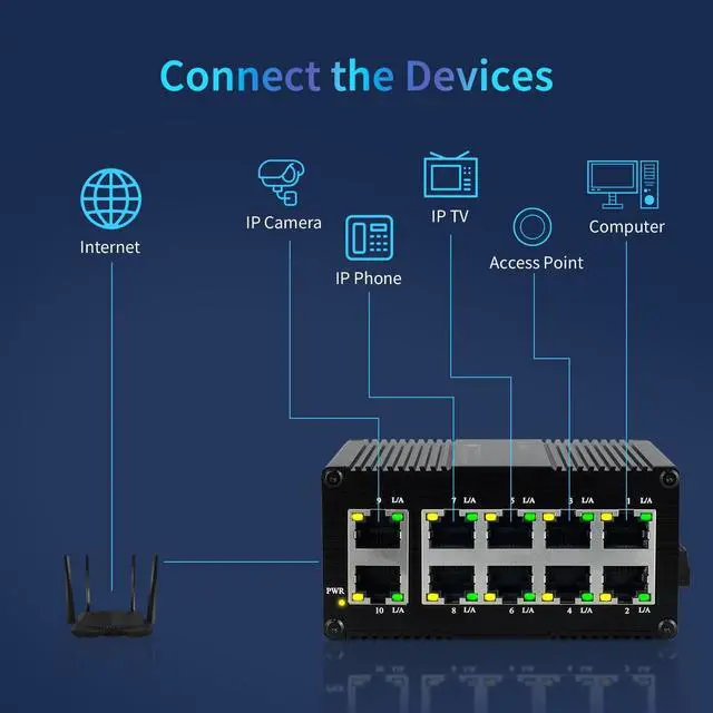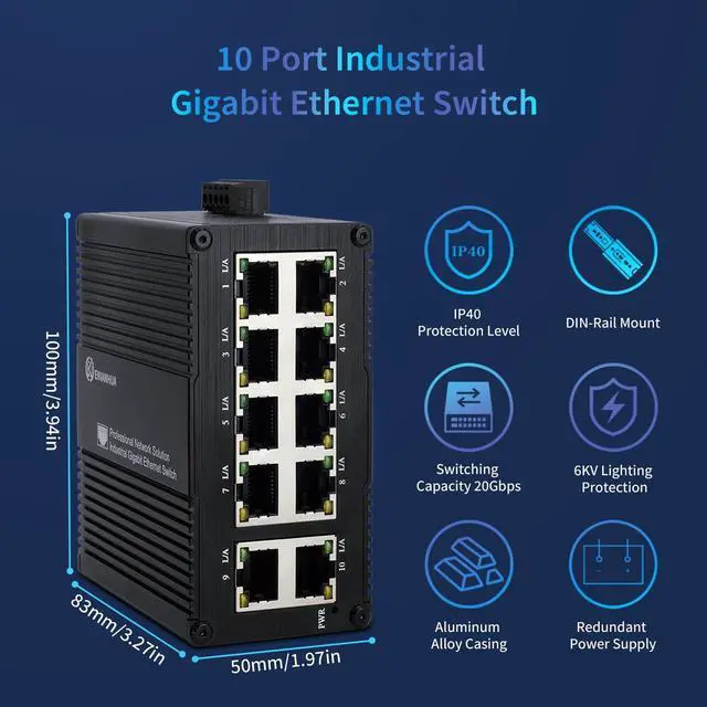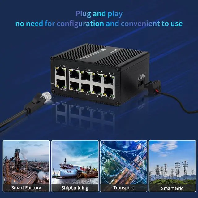 The 10ports switch is a good choice for an economical solution for industrial Ethernet connections.
