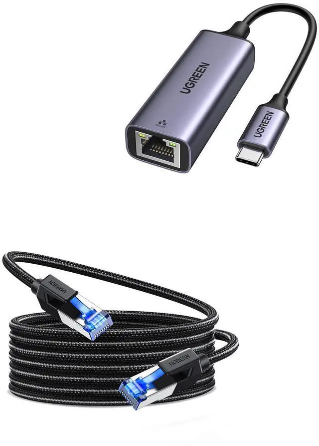 UGREEN Cat 8 Ethernet Cable 25FT Bundle with USB C to Ethernet Adapter 1000Mbps