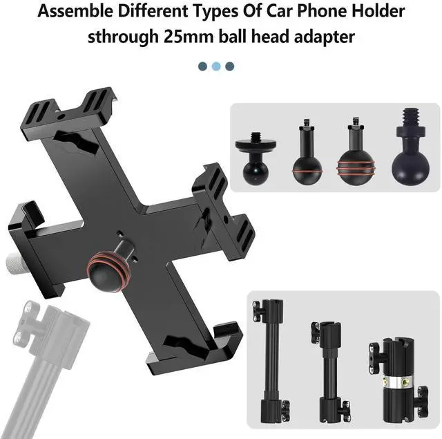 The car tablet holder is connected to various arm clips through a 1-inch ball head, and the universal rotating ball head can rotate 360 ° or tilt to different angles, meeting any viewing angle. The iPad car holder adopts a special cross shaped design structure, which ensures stability during use even on bumpy roads, providing the best view for your travel. The combination of powerful spring arms and large jaws of this iPad car holder ensures that your device remains stable on a tripod, suitable for all phones and tablets with screens ranging from 5.6 inches to 12 inches.