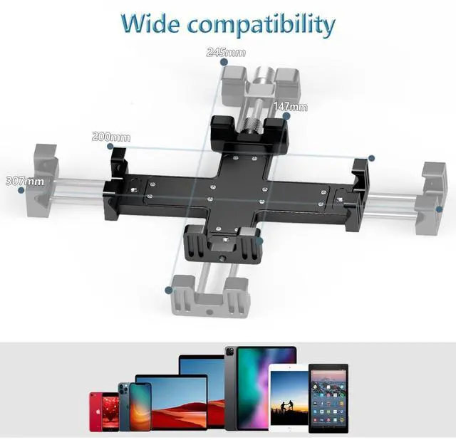 This car dashboardtablet holder is equipped with soft silicone pads and four foot clips on the inside, which not only protect your tablet or phone from scratches and collisions, but also a 2-in-1 smartphone tablet adapter that can be adjusted to fit devices of different sizes through the back knob. Charging space is reserved on all three sides, making it easy for you to connect the charging cable when using the tablet holder. It can be used for indoor live streaming, car tablet navigation, or in car audio-visual entertainment. This car iPad holder has good adjustability.