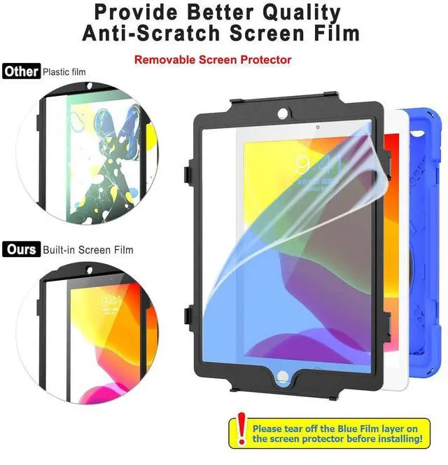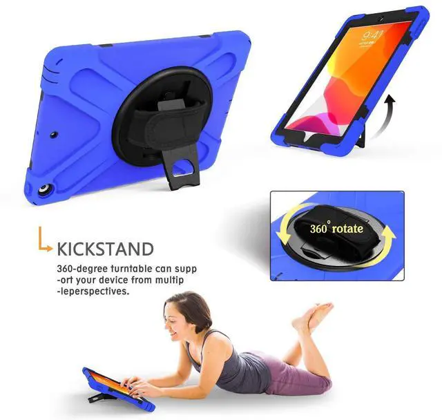 TSQ Case for 9th/8th/7th Generation 10.2 Inch w/Screen Protector for Kids Boys 2021/2020/2019 ^^ Heavy Duty Shockproof Silicone Case w/ 360 Degree Rotatable Stand/Hand Shoulder Strap-Blue