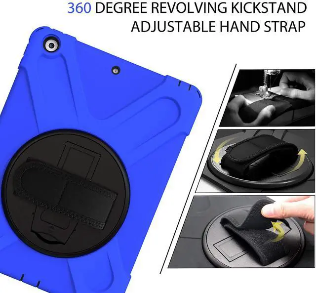TSQ Case for 9th/8th/7th Generation 10.2 Inch w/Screen Protector for Kids Boys 2021/2020/2019 | Heavy Duty Shockproof Silicone Case w/ 360 Degree Rotatable Stand/Hand Shoulder Strap-Blue