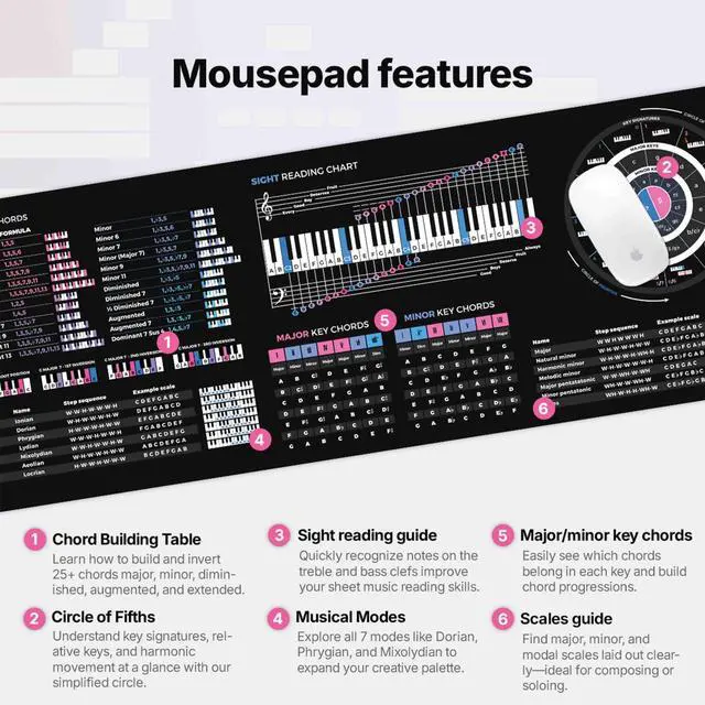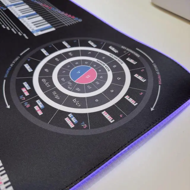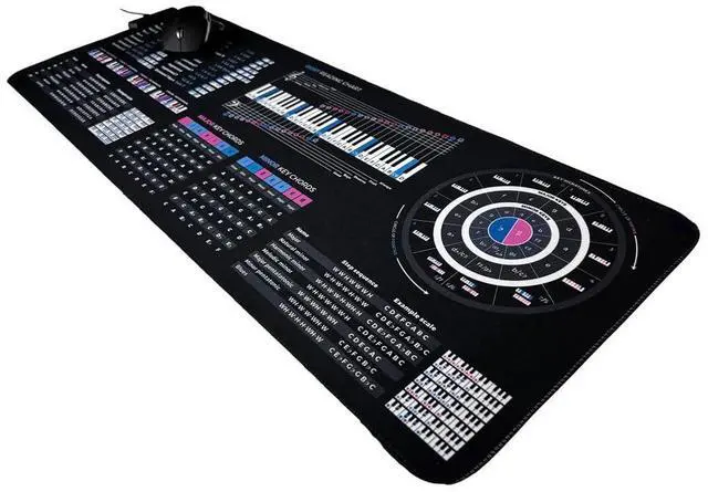 Music Theory Cheat Sheet Mousepad 35×25cm ( 13.8" x 9.8" ) & 80×30cm ( 31.5" x 11.8" ) Chord Formulas, Circle of Fifths, Modes & Clefs Music Learning Desk Mat LED Version Available