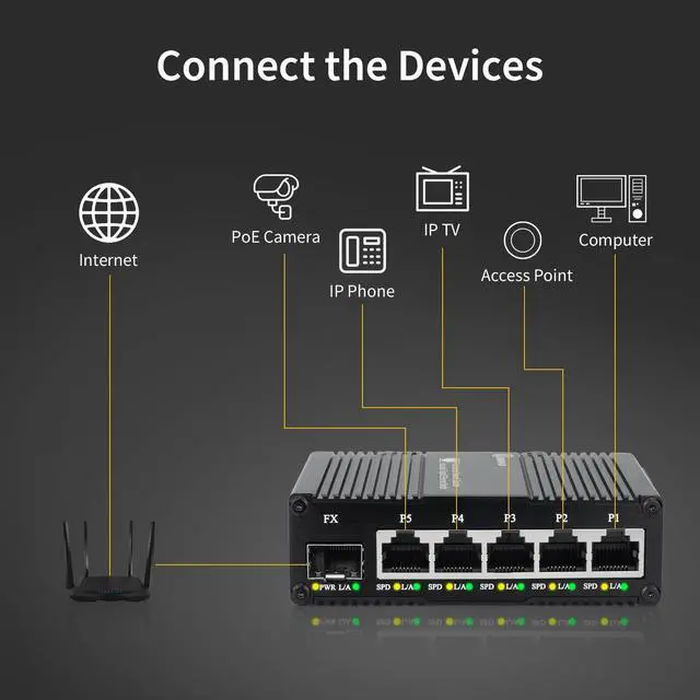 The switch features with fanless design that ensures noiseless operation and greater reliability over time.