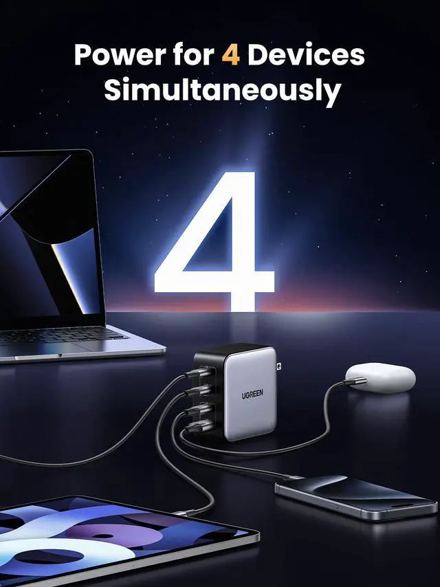 UGREEN 100W USB C Charger, Nexode 4-Port GaN Foldable Compact Fast Laptop Charger Power Adapter for MacBook Pro/Air, iPad Pro, iPhone 16 Pro, Galaxy S25/S24, Steam Deck, Google Pixelbook, and More