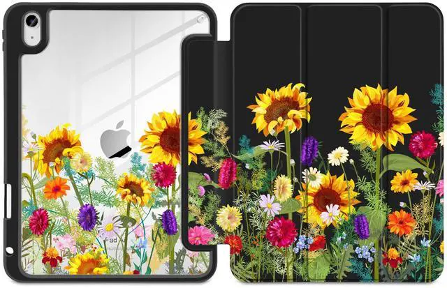 MEEgoodo Case for iPad Air 11 inch M3 2025 / M2 2024, for iPad Air 5th / 4th Generation Case 10.9 inch 2022/2020, Tablet Cover with Acrylic Transparent Back Shell, Sunflowers