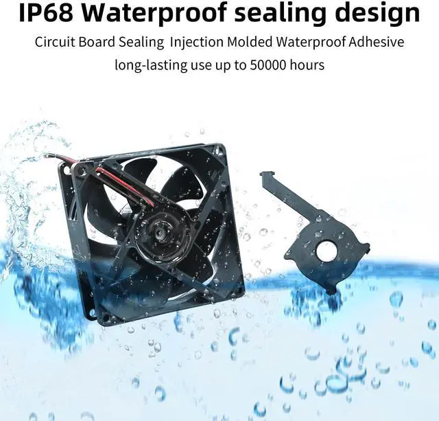 Advanced IP68 Waterproof TechThis 24V fan features upgraded IP68 waterproof technology, making it an ideal waterproof fan for RV fridge fans, ventilation fans, and solar applications. It operates perfectly in challenging wet environments.