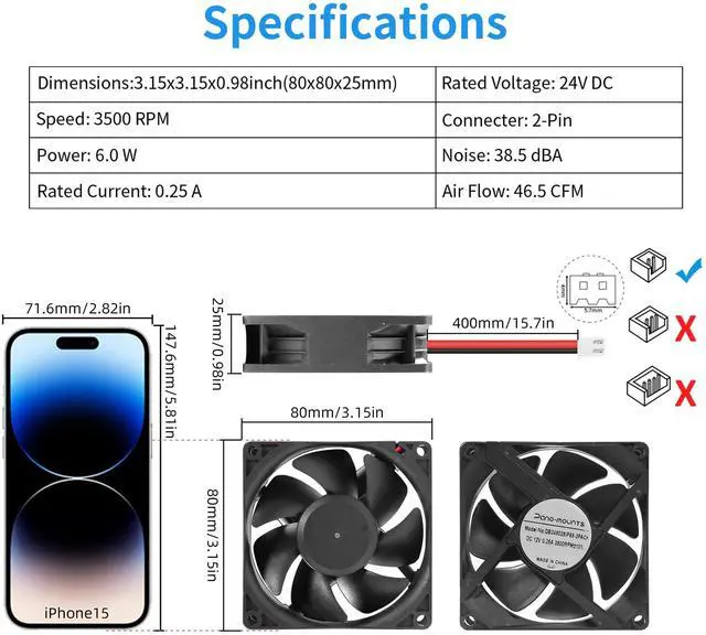 Versatile Application RangeThis versatile 24V fan is perfect as an RV cooling fan for marine, greenhouses, humidifiers and compact setups. Its 80mm size fits tight spaces, providing efficient cooling for various ventilation fan needs. ^