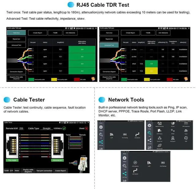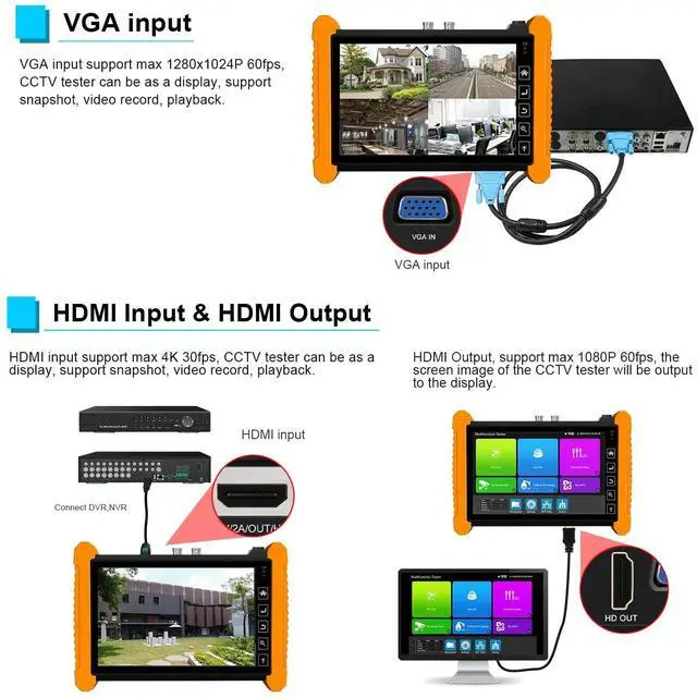 [7-inch Retina Touch Screen, 1320×1200 Resolution] : Delivers sharp, vibrant visuals for live camera views and testing interfaces. The responsive touch control (NO lag, NO cumbersome button presses) enables instant PTZ adjustments, 4x zoom, and screen snapshots. Works flawlessly in bright sunlight (NO glare, high-brightness display) and low-light conditions (NO visibility issues), with glove-compatible operation (perfect for messy installations). Simply tap to navigate menus, test cameras, or review footageNO complicated configurations, making on-site CCTV testing fast and intuitive.