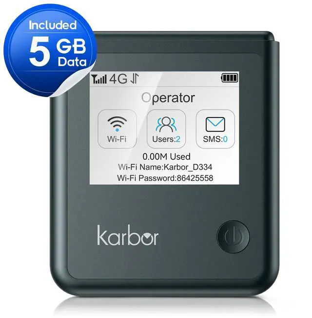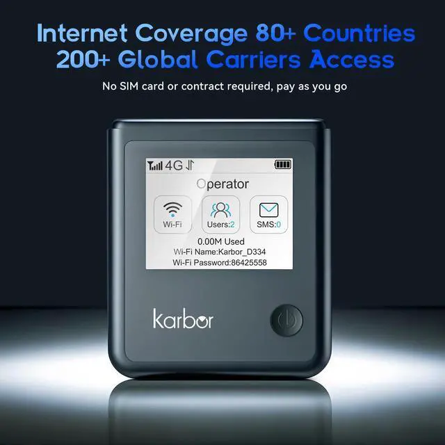 Karbor 4G LTE Mobile Hotspot, Portable WiFi for Travel in 80+ Countries, No SIM Needed, No Contract, Pocket Network Device for Traveler, 1GB Global Data (US/CA/MX/EU/Asia) & 5GB US Data